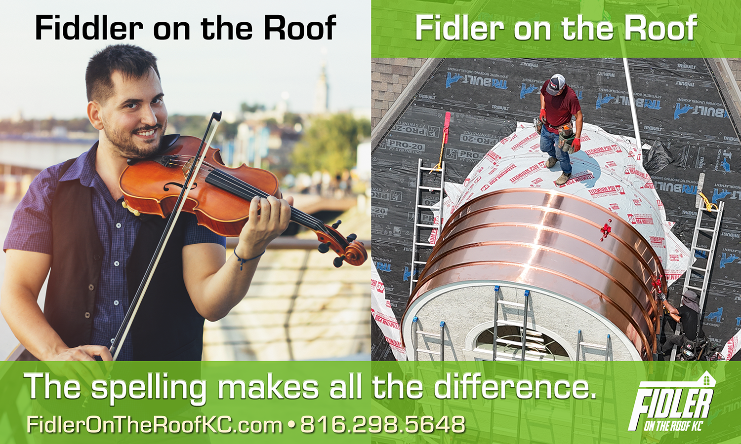 If you search for Fidler on the Roof KC on the internet, it’s likely to suggest an alternative spelling of our name. We take no offense. It’s just that we were born Fidlers, not fiddlers. We’re roofers, not instrumentalists (though at present our team does include a mandolin player).